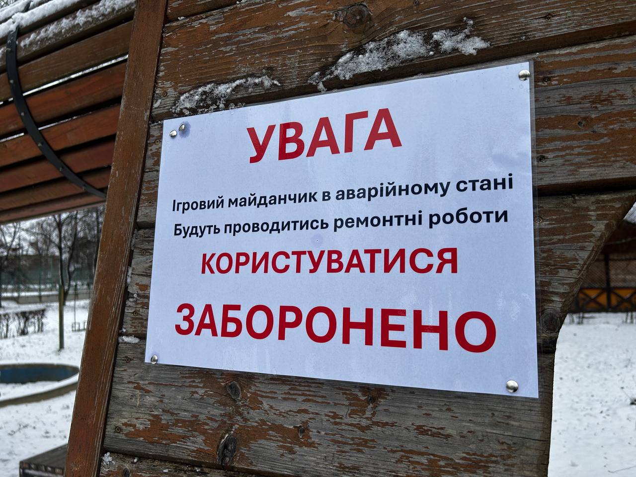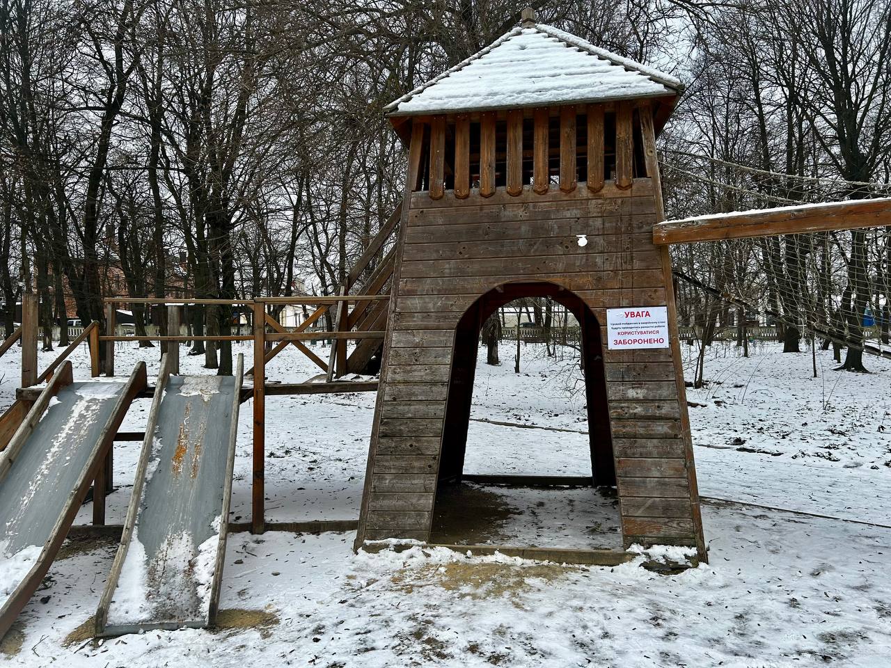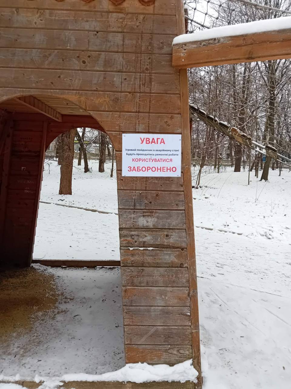 У зв’язку з тим, що наразі дитячий майданчик у міському парку в аварійному стані, тимчасово просимо батьків і дітей ним не користуватися. ⚠️Необхідні ремонтні роботи фахівці виконають з настанням сприятливих погодних умов.