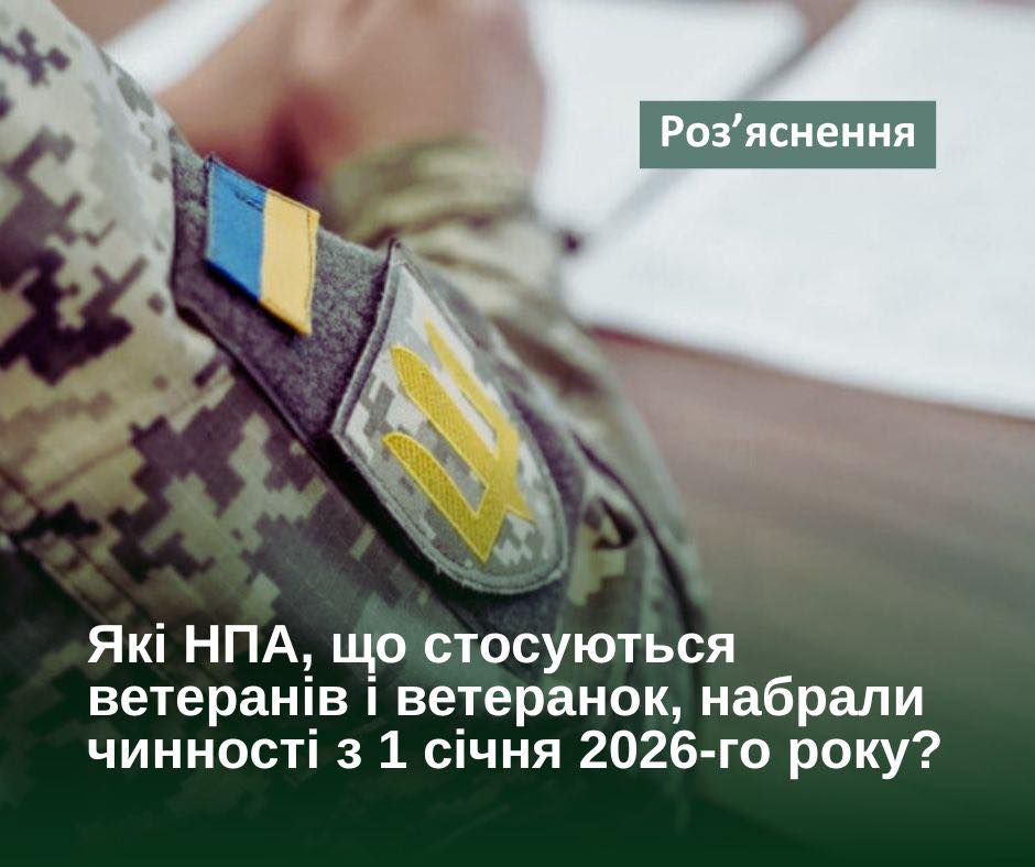 ❗️Зверніть увагу, що з 1 січня 2026 року набрали чинності деякі номративно-правові акти, які стосуються ветеранів і ветеранок.