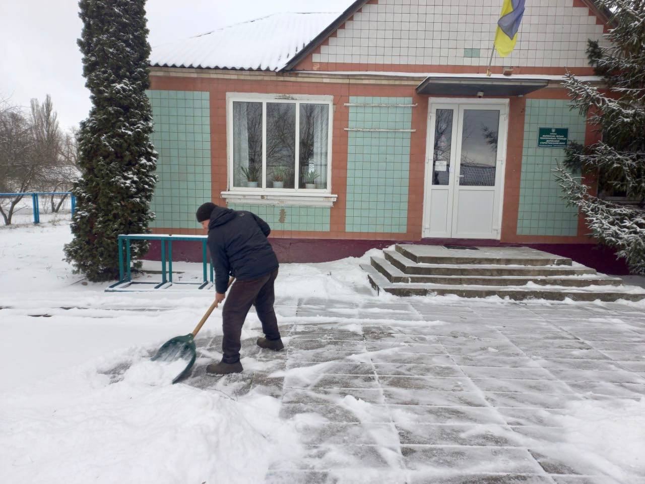 Проведено очищення від снігу території біля адміністративного приміщення та центральної частини с. Устинівка;