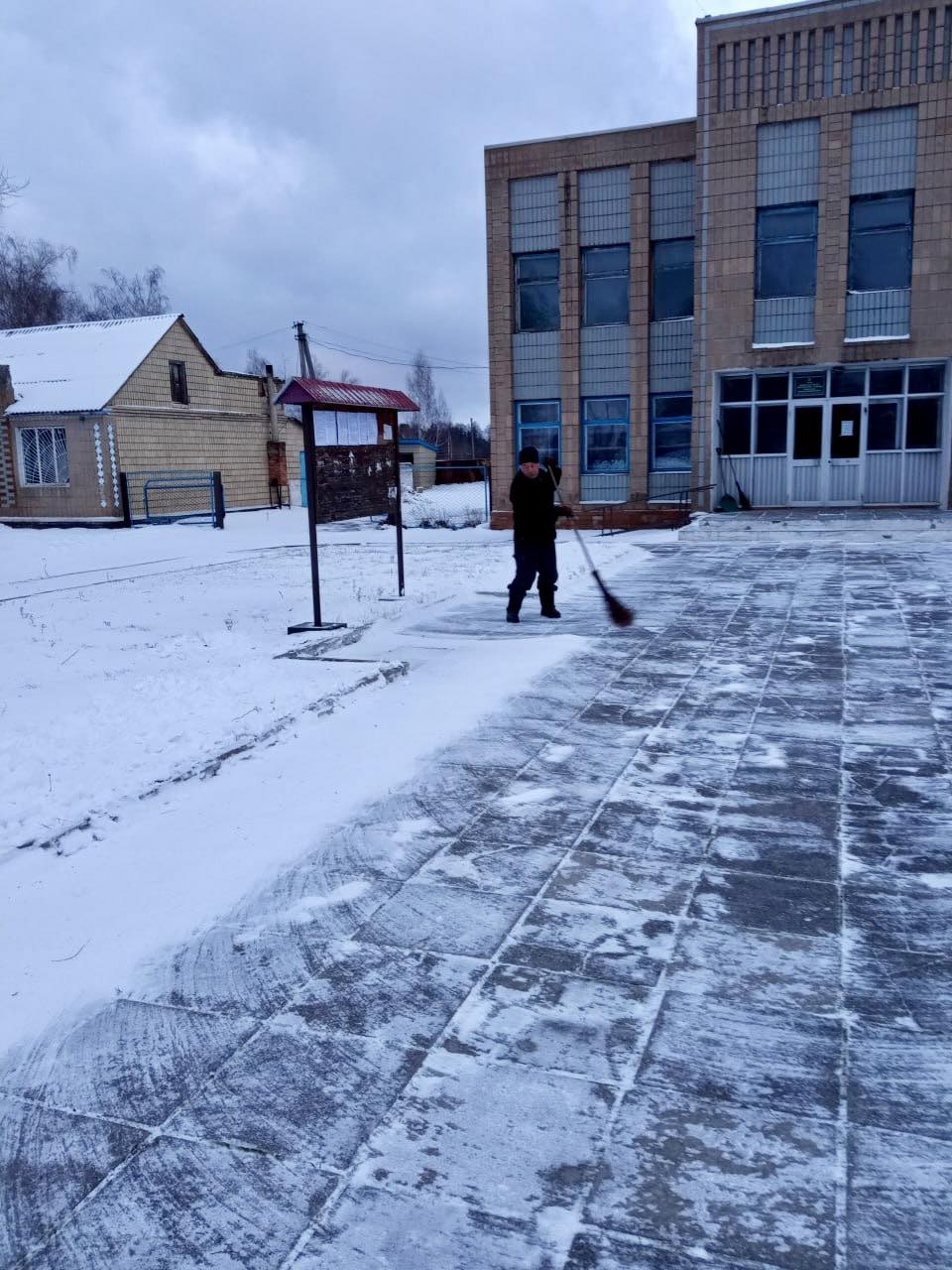 проведено розчищення снігу біля старостату, на тротуарах та алеях.