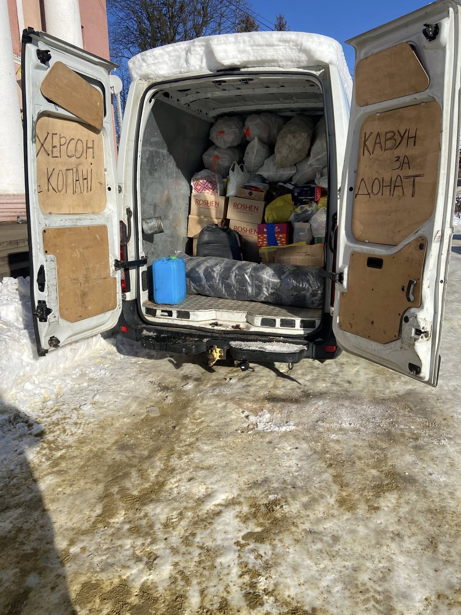 25 ящиків гумових чоботів,15 ящиків яблук, 2 холодильники, газова плита, скиди для дронів багато,70 відер вареників, 25 відер квашеної капусти, 22 відерка меленого сала, 44 газові балончики, матраци, ковдри, подушки, фліски, мішки, 50 блоків води та квасу, 20 блоків енергетиків, побутова хімія, енергетики, чай, кави та смаколики, медицина, 3 ящика ковбаси, антидронові сіткм, гелі для горіння, індивідуальні передачі, дитячі малюнки.