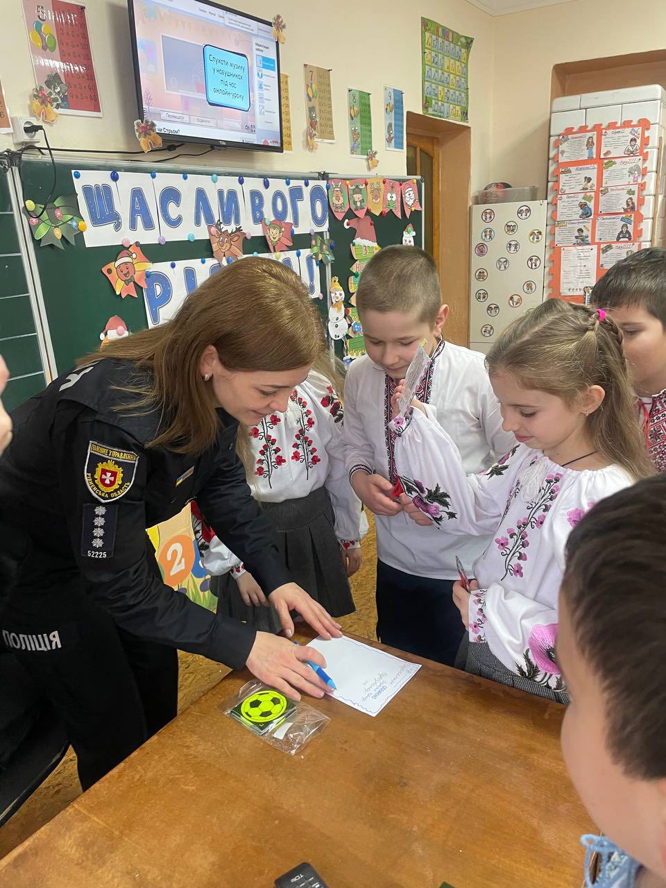 👮♀️Поліцейська Олеся Бондарець завітала до учнів 4-го класу Дубенського ліцею № 3, аби нагадати про правила безпечної поведінки під час зимових канікул.