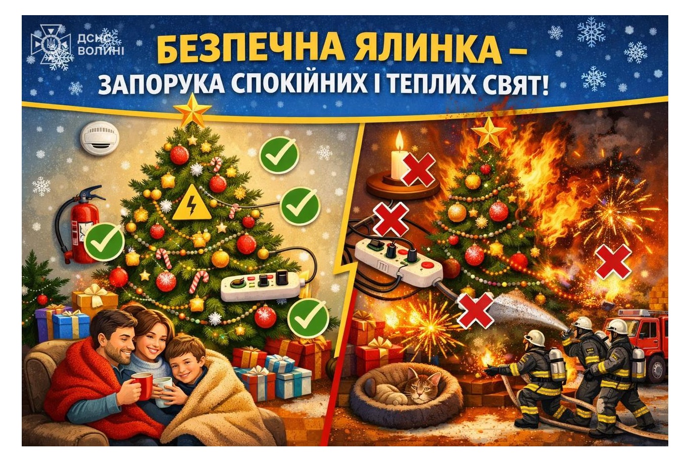🎄Зимові свята наповнюють оселі світлом, теплом і передчуттям дива. Та щоб святкова атмосфера залишалася радісною, варто пам’ятати про безпеку, адже саме в новорічно-різдвяний період значно зростає кількість побутових пожеж.