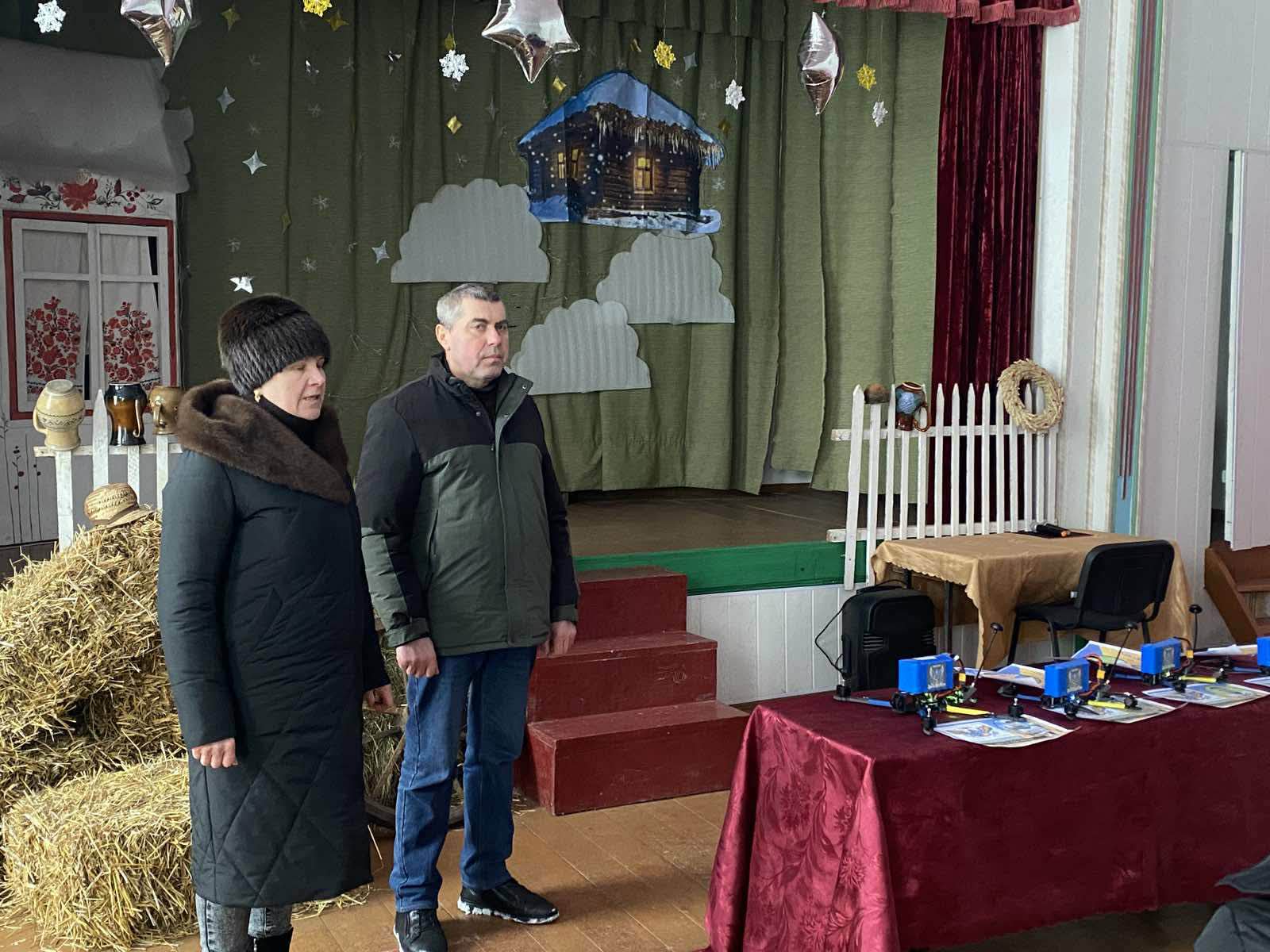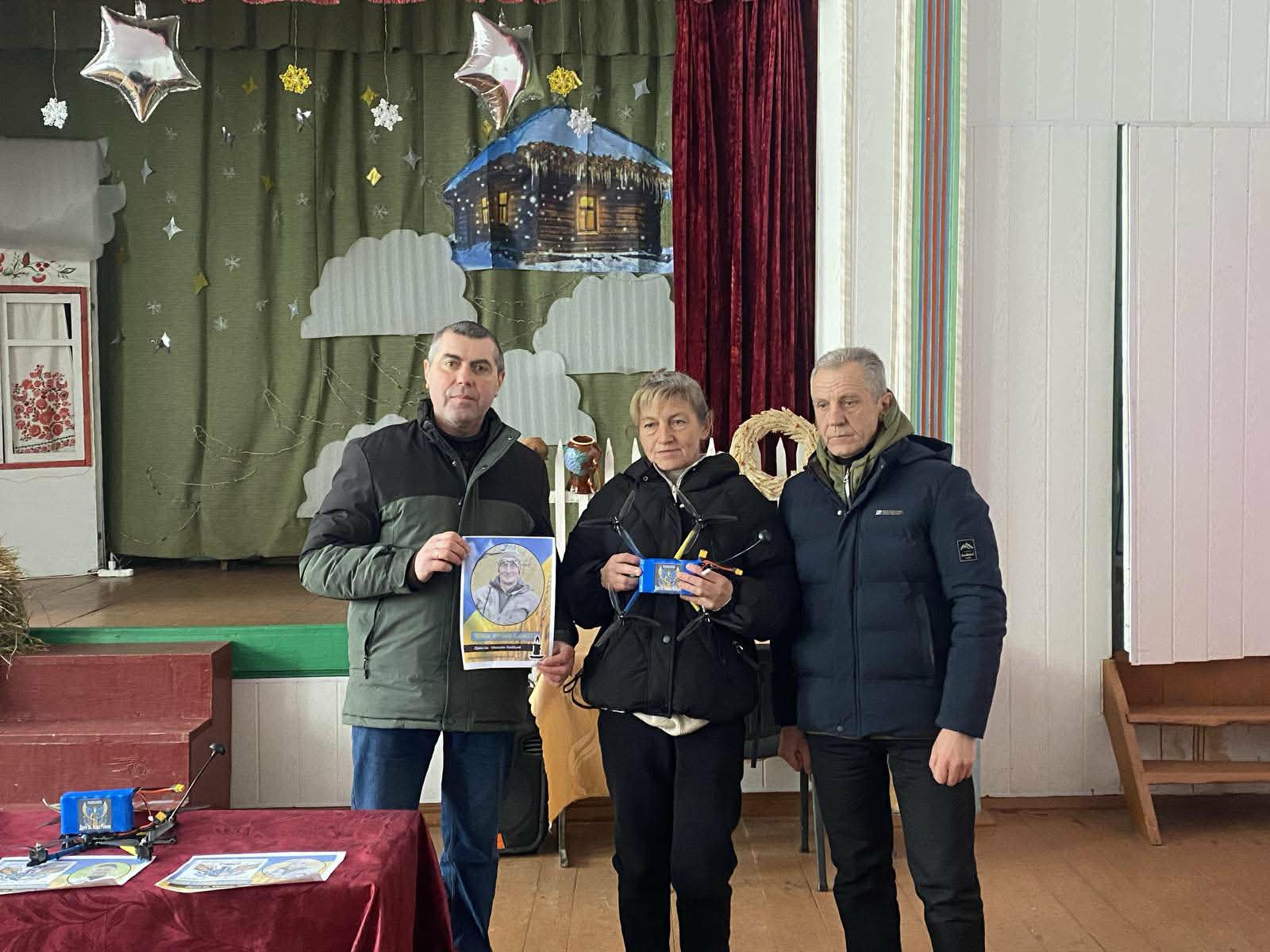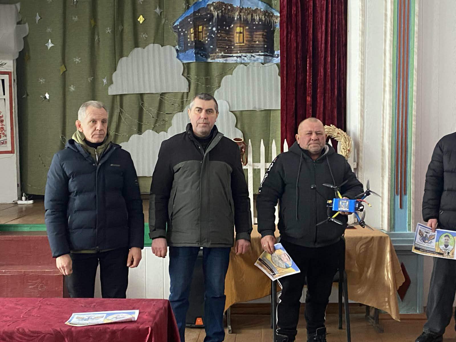👉 Родинам загиблих Геоів-односельчан у сільському будинку культури вручили іменні дрони, придбані вскладчину жителями села та волонтерами.