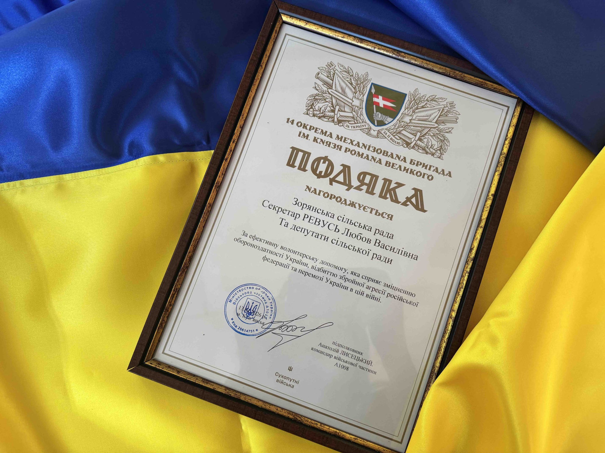 Зорянська сільська рада отримала чергову подяку від 14-ї окремої механізованої бригади ЗСУ за сприяння у придбанні безпілотного літального апарата Autel Evo Max 4T.