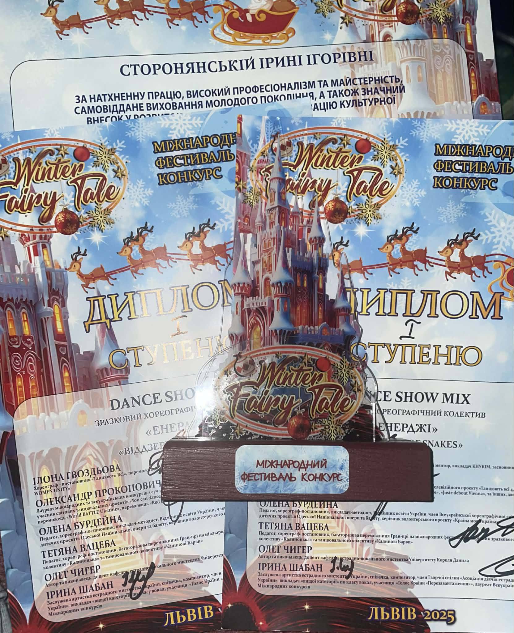 👉У суботу, 20 грудня зразковий хореографічний колектив «ЕНЕРДЖІ» гідно представив свою майстерність на міжнародному фестивалі-конкурсі «WINTER FAIRY TALE». Очолювала журі відома хореографиня та телеведуча Ілона Гвоздьова. За підсумками конкурсних виступів колектив виборов дві золоті нагороди, вкотре підтвердивши високий рівень підготовки та професіоналізму.