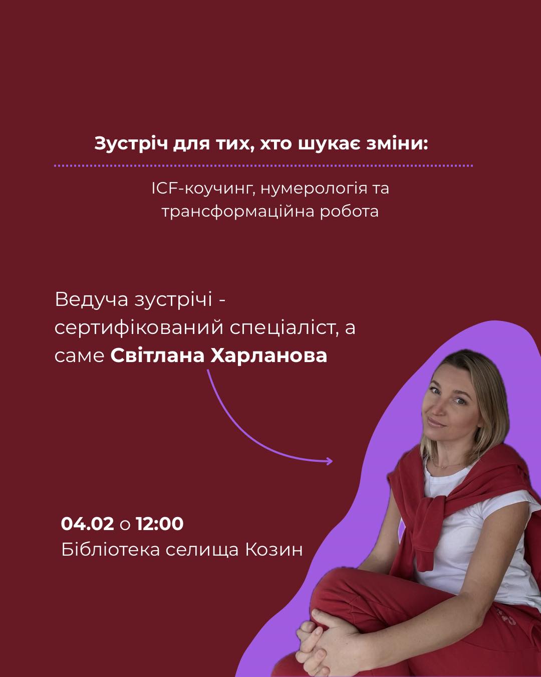 Фішка цієї зустрічі — поєднання ICF-коучингу та нумерології, де цифри не “пророкують”, а підсвічують твій шлях, сильні сторони та внутрішні блоки.