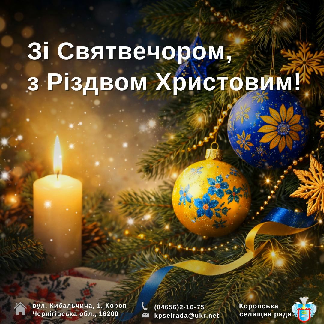 ✨Нехай Різдво Христове принесе у наші родини світло, тепло й єдність, зміцнить віру та додасть сил іти вперед. Бережімо найдорожче – своїх близьких, рідну громаду та нашу Україну.