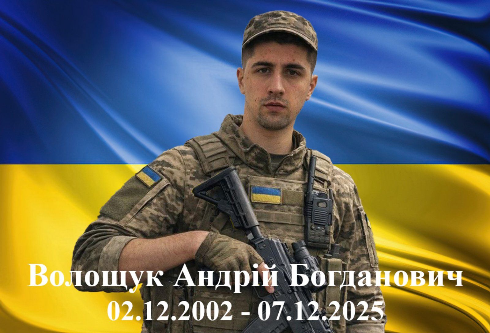 Зі смутком та жалем повідомляємо, що завтра, 23.12.25р. зустрічаємо загиблого Героя з с. Сваричів Андрія ВОЛОЩУКА.