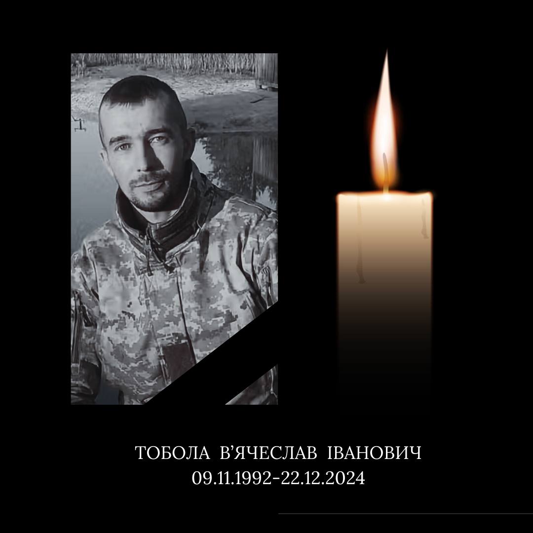 Офіційне підтвердження сповіщає про те, що Інспектор прикордонної служби 2 категорії – механік-водій першого відділення інспекторів прикордонної служби третьої прикордонної застави відділу прикордонної служби Могилів-Подільський (тип С) 24 прикордонного загону ім. Героя України ст. лейтенанта В. Семенова Державної прикордонної служби України сержант В’ЯЧЕСЛАВ ТОБОЛА вірний присязі та українському народові, виконуючи бойове завдання у бою за Україну, її свободу та незалежність загинув 22 грудня 2024 року в районі населеного пункту ніколаєво-дар’їно (рф).