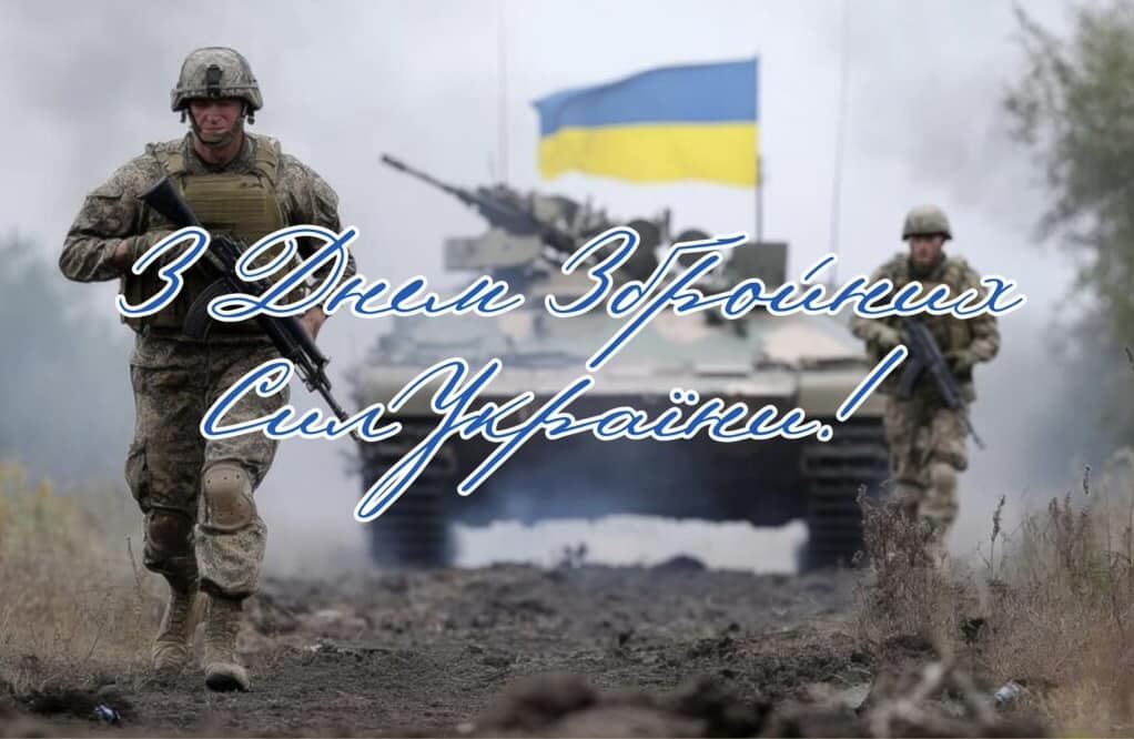 З Днем ЗСУ! Нехай ваша мужність завжди супроводжується впевненістю, а відвага й рішучість приносять мир та спокій нашим домівкам. Дякуємо за вашу самовідданість і героїзм.