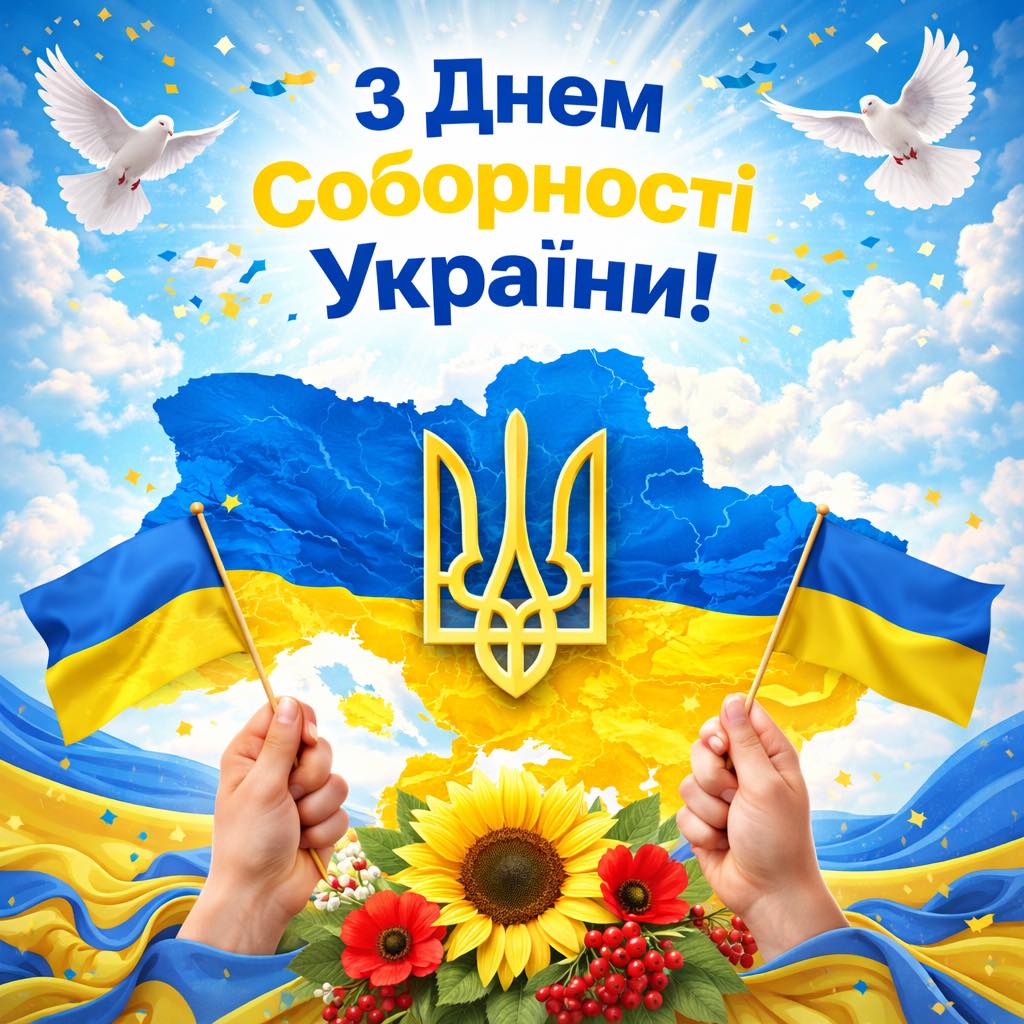 Щиро вітаємо вас з Днем Соборності України — святом єдності, сили духу та незламної волі нашого народу. Це день, який нагадує: ми сильні тоді, коли разом, коли серце України б’ється в унісон від сходу до заходу, від півночі до півдня.