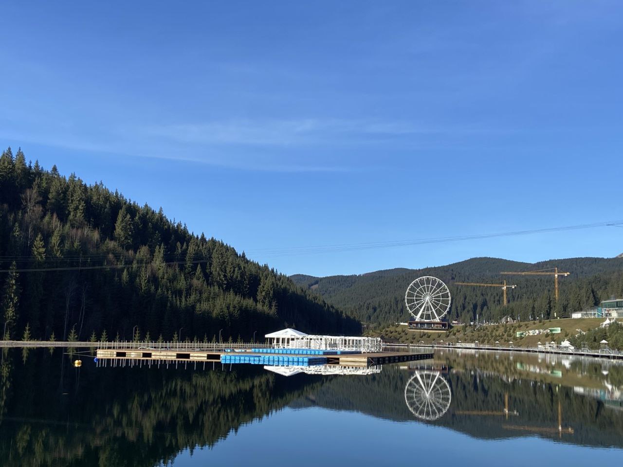 Мальовничу красу Карпат споглядали під час поїздки на оглядовому колесі високо над землею серед гірських хребтів.