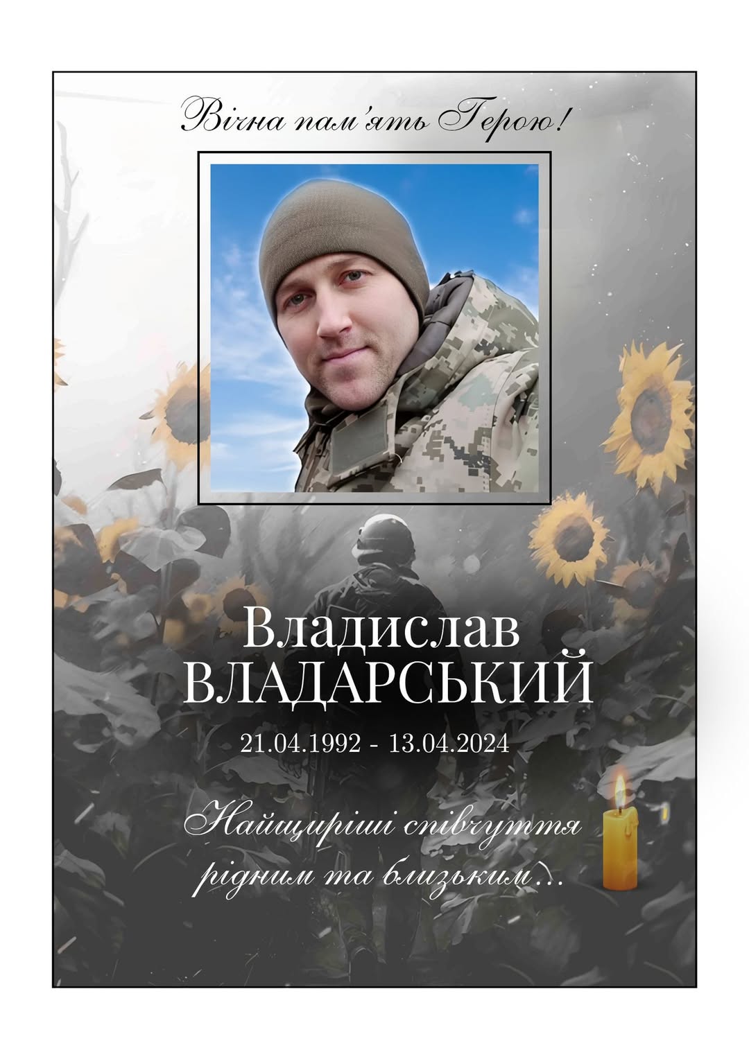Від імені всієї Решетилівської громади висловлюю щирі співчуття рідним та близьким Владислава ВЛАДАРСЬКОГО. Вічна пам’ять Герою!