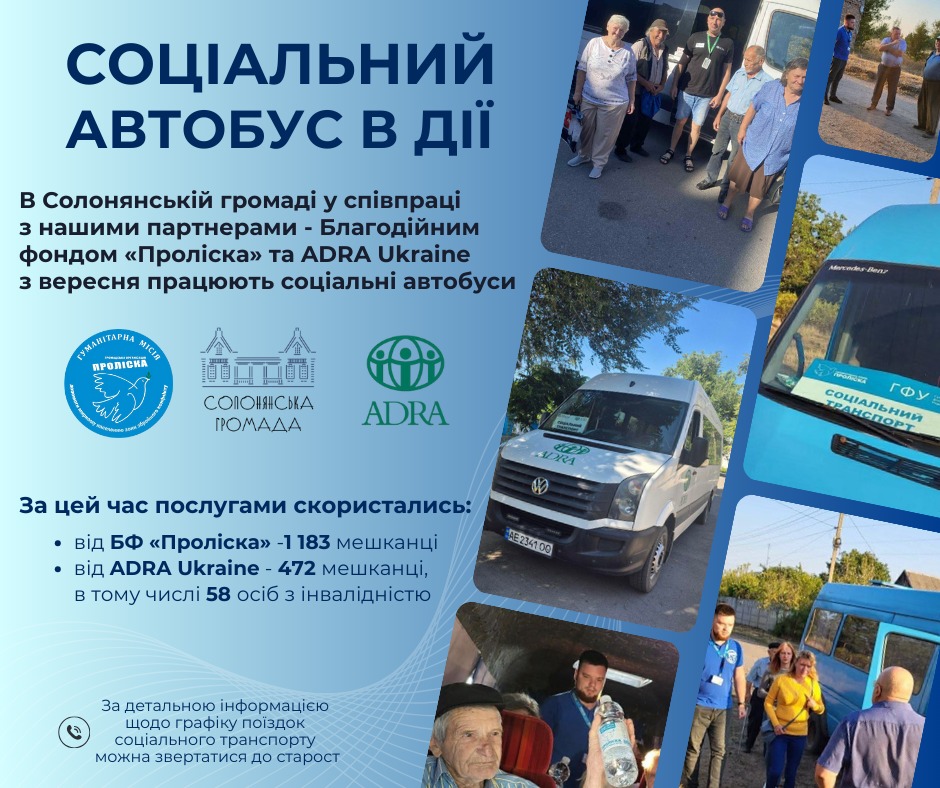 🚌 З вересня у Солонянській громаді розпочала роботу послуга безкоштовного соціального перевезення, яка реалізується у співпраці з нашими партнерами Благодійним фондом «Проліска» Проліска – Дніпро та ADRA Ukraine