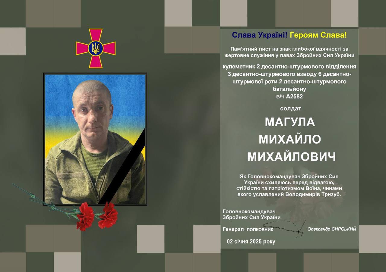 З глибоким сумом повідомляємо, що сьогодні повертається додому на щиті загиблий Захисник України Михайло Михайлович МАГУЛА з Дубового, 1989 року народження.