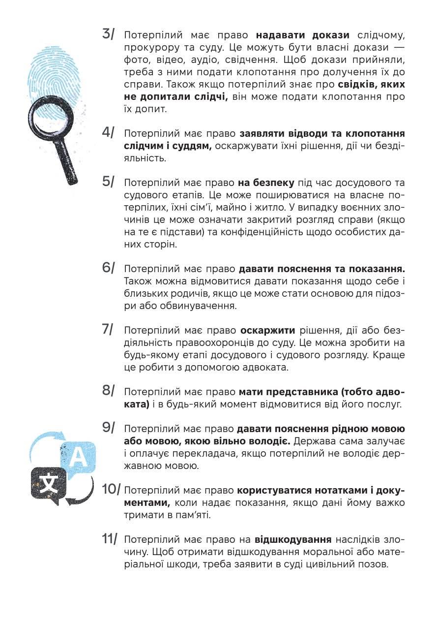 ⏩ З метою забезпечення належного інформування населення про права та можливості отримання допомоги особами, які постраждали від кримінальних правопорушень, публікуємо пам’ятку для потерпілих, розроблену громадською організацією «Медіаційна ініціатива за права людини».