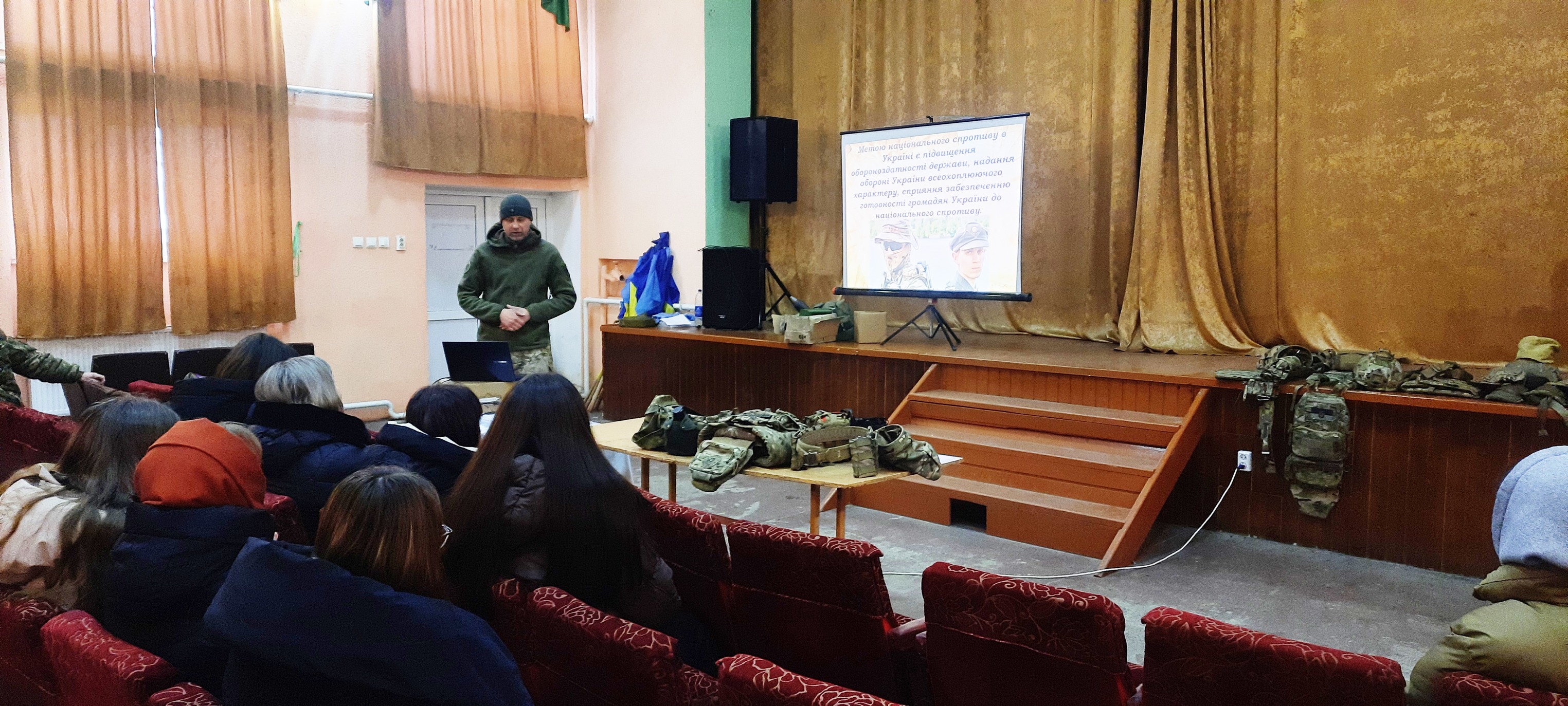 Під час лекцій розглянули законодавчу базу українського спротиву та його роль у системі оборони держави. Учасники вивчали елементи тактичного спорядження, надання домедичної допомоги пораненим на полі бою (тактична медицина), мінну безпеку та види боєприпасів до стрілецької зброї. Окрему увагу приділили психологічній підготовці, роботі з бойовим стресом, міжнародному гуманітарному праву та облаштуванню невибухових інженерних загороджень.