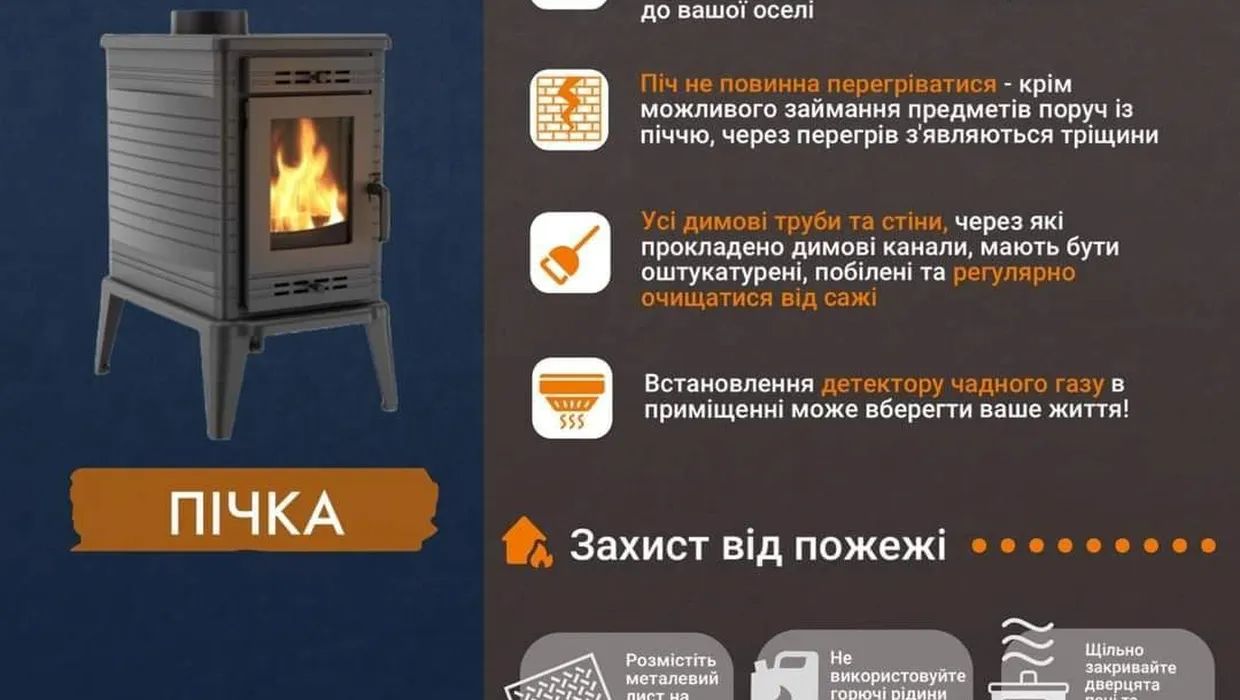 Пічне та газове опалення потребує особливої уваги, адже більшість пожеж у приватних будинках виникає через перегрів печей, тріщини в кладці, неправильну розтопку або випадання вуглин.