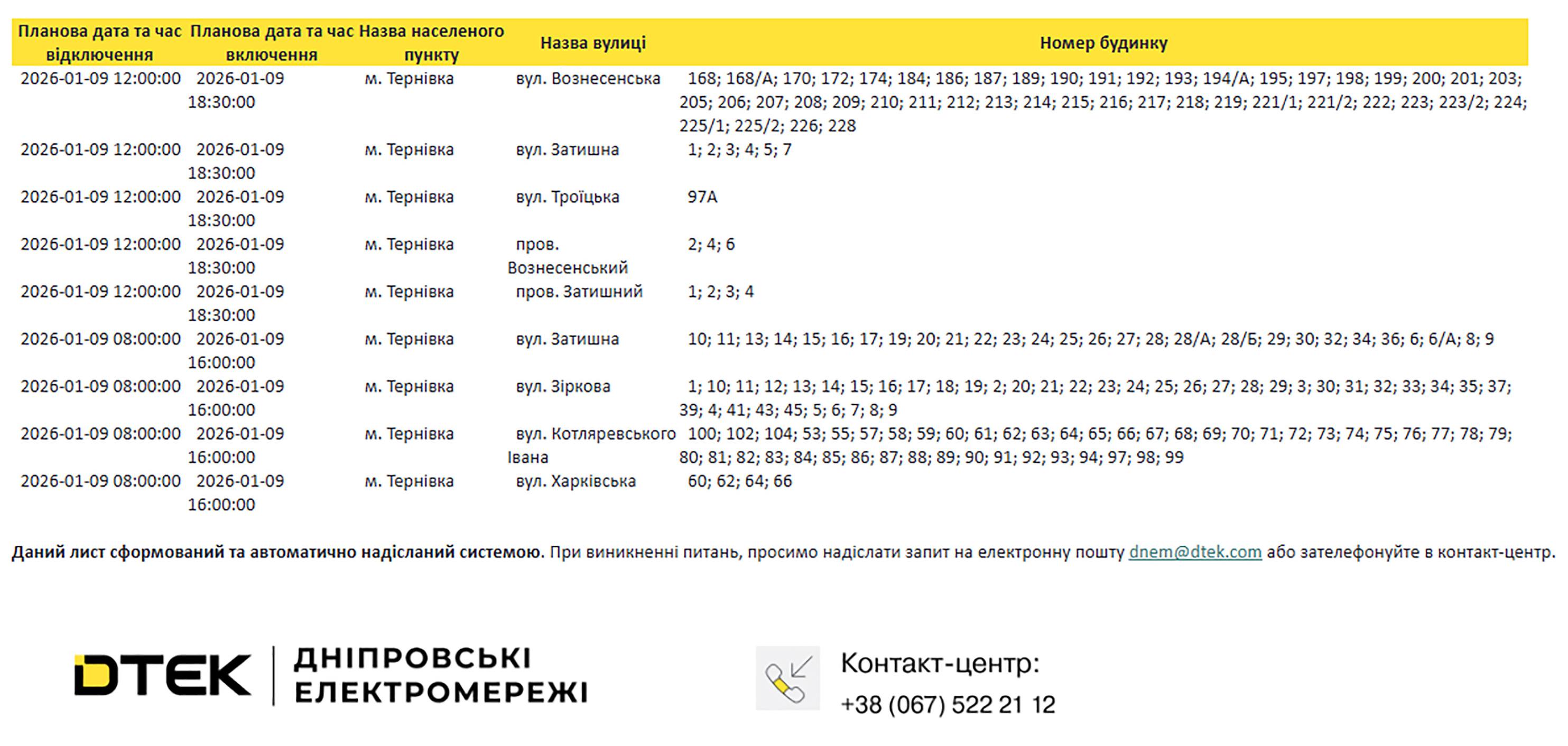 У зв’язку з виконанням даних робіт буде відключення електроенергії: