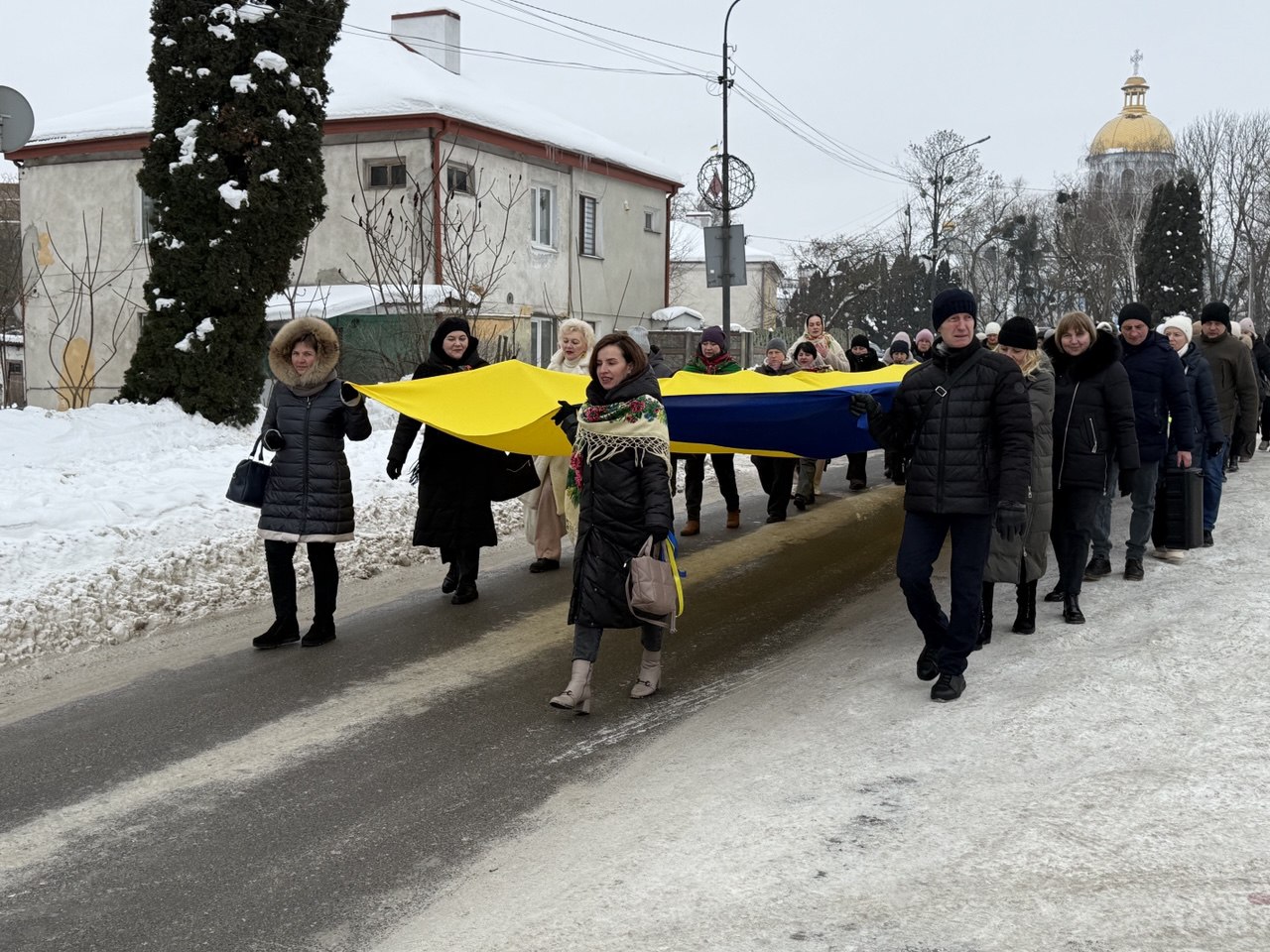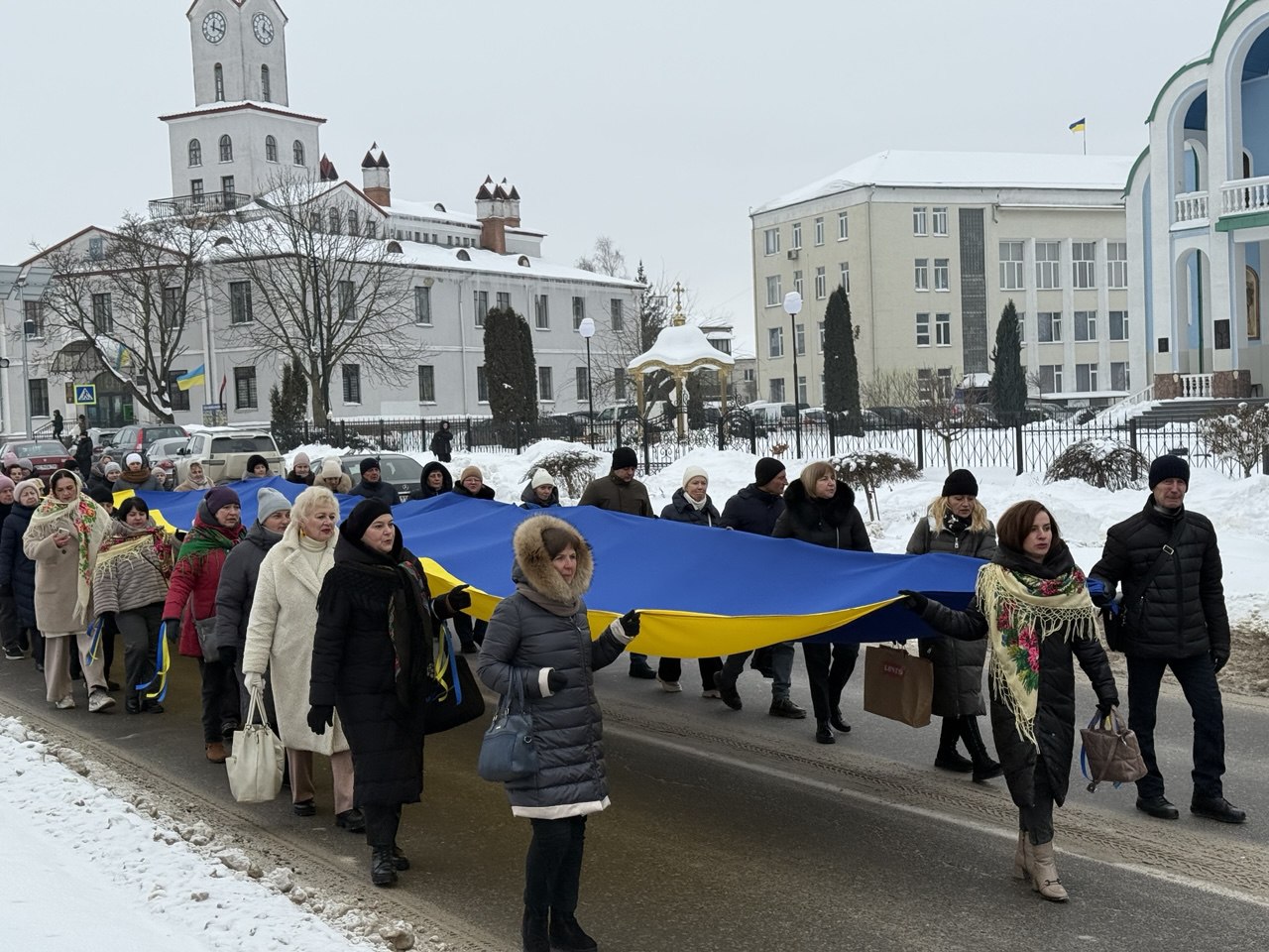 🇺🇦 З нагоди відзначення 107-ї річниці Акту Злуки ЗУНР та УНР в єдину соборну Українську державу сьогодні, 22 січня, у місті Буську громадськість, працівники установ та організацій урочистою ходою пройшли з синьо-жовтим знаменом вулицями Грушевського та Петрушевича до майдану Незалежності.