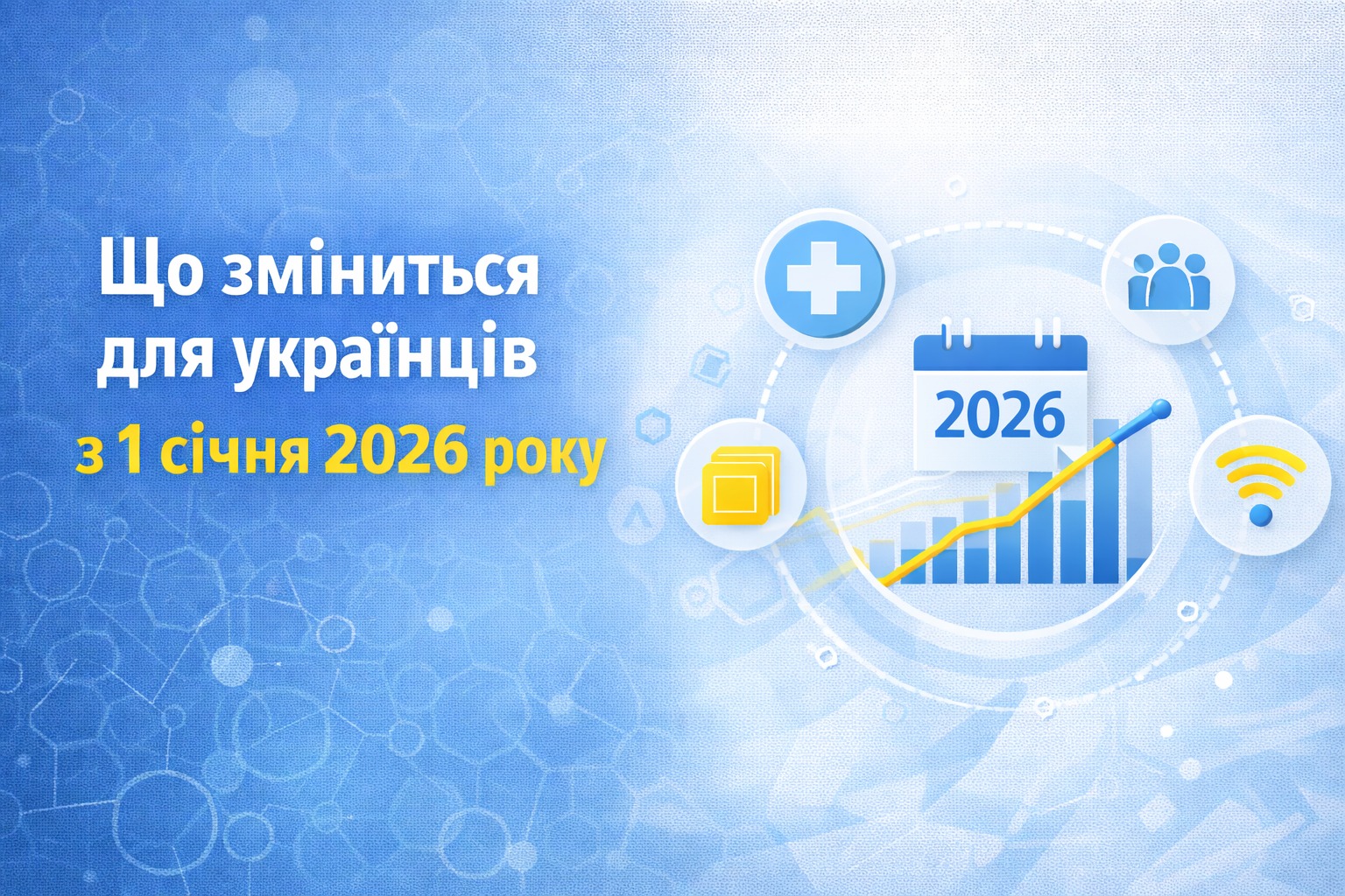 🔔 З початку нового року набирає чинності низка важливих змін, які стосуються доходів, соціальної підтримки, медицини, мобільного зв’язку та інших сфер життя. Коротко – про головне: