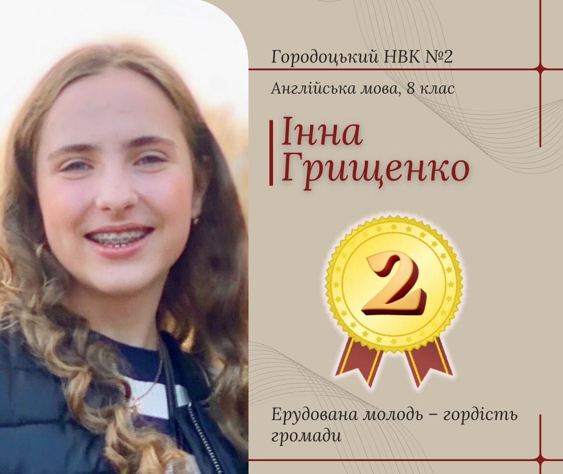 🥈Інну Грищенко, 8 клас Городоцького НВК №2