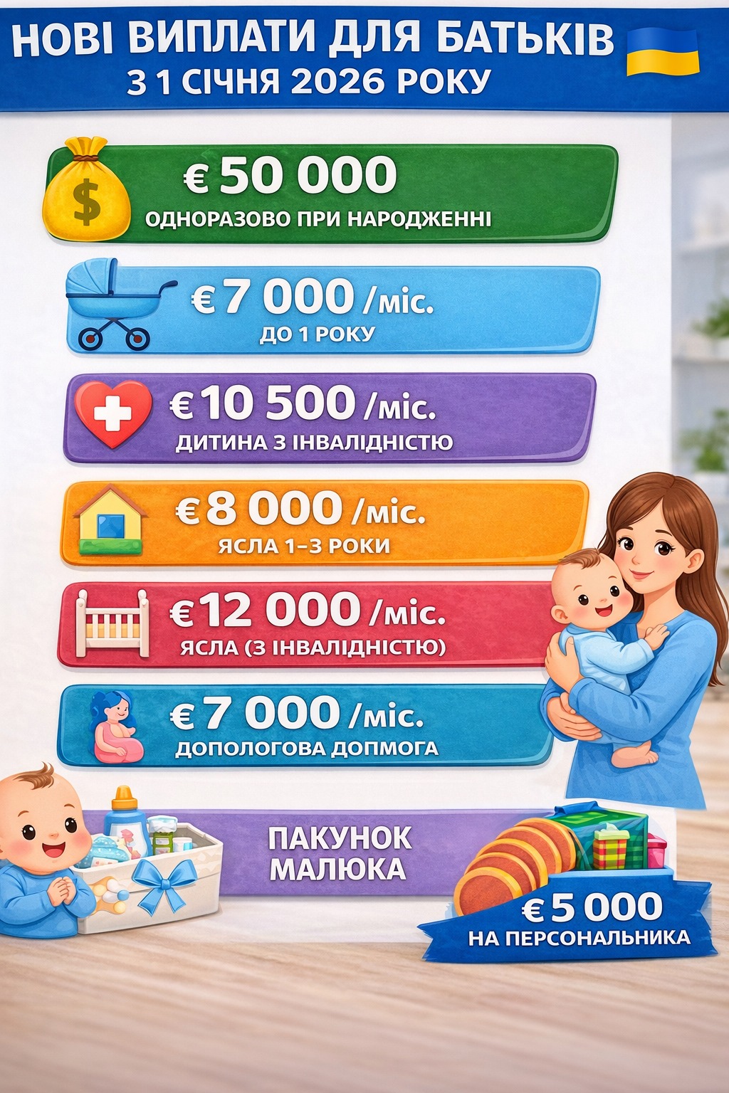 Виплата для новонароджених після 1 січня 2026 року 50 тис. гривень.