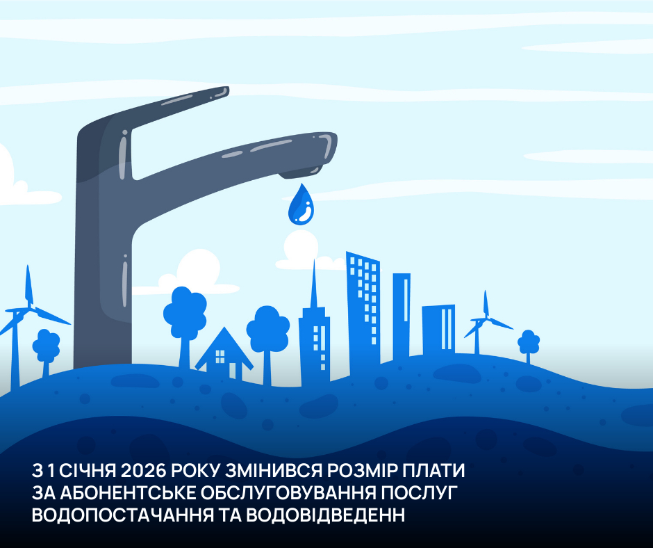 🚰 З 1 січня 2026 року змінився розмір плати за абонентське обслуговування послуг водопостачання та водовідведення. Нові суми встановлено відповідно до постанови Кабінету Міністрів України.