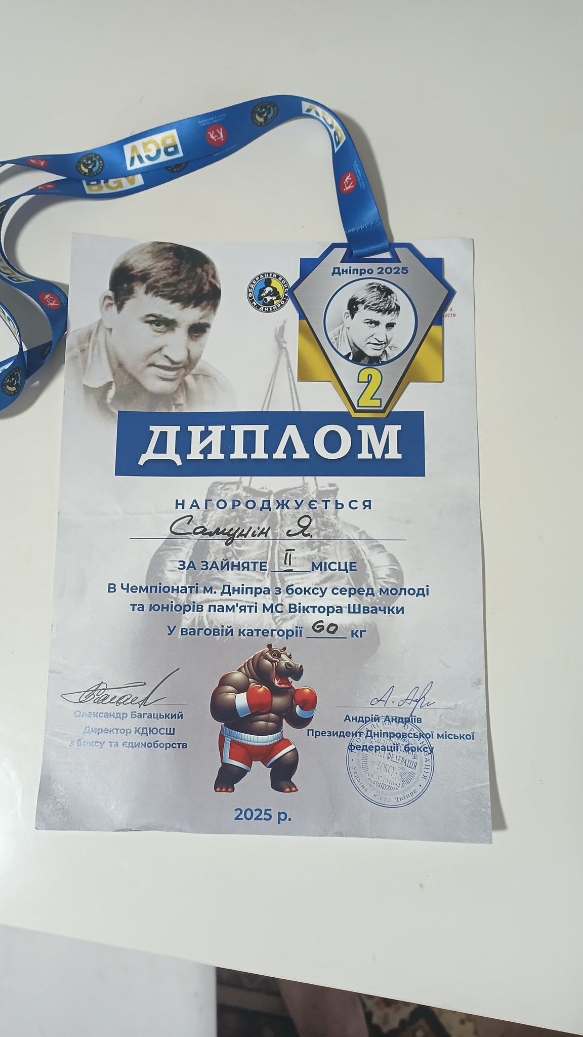 З 2.12 по 4.12.25р. відбувся відкритий чемпіонат міста Дніпро з боксу присвячений пам’яті МС Віктора Швачки.Спортсмен з Богданівки Самунін Ярослав посів 2 місце у ваговій категорії 60кг.у запеклій боротьбі накаутом переміг суперника з Дніпра та вийшов до фіналу,там його чекав призер чемпіонату України ,але нажаль цього разу з рахунком 2.1 наш спортсмен поступився та впевнено забрав своє срібло,Мої вітання від всієї команди!!!( За досягнення Самуніну Ярославу було присвоєно 1 спортивний розряд з боксу)
