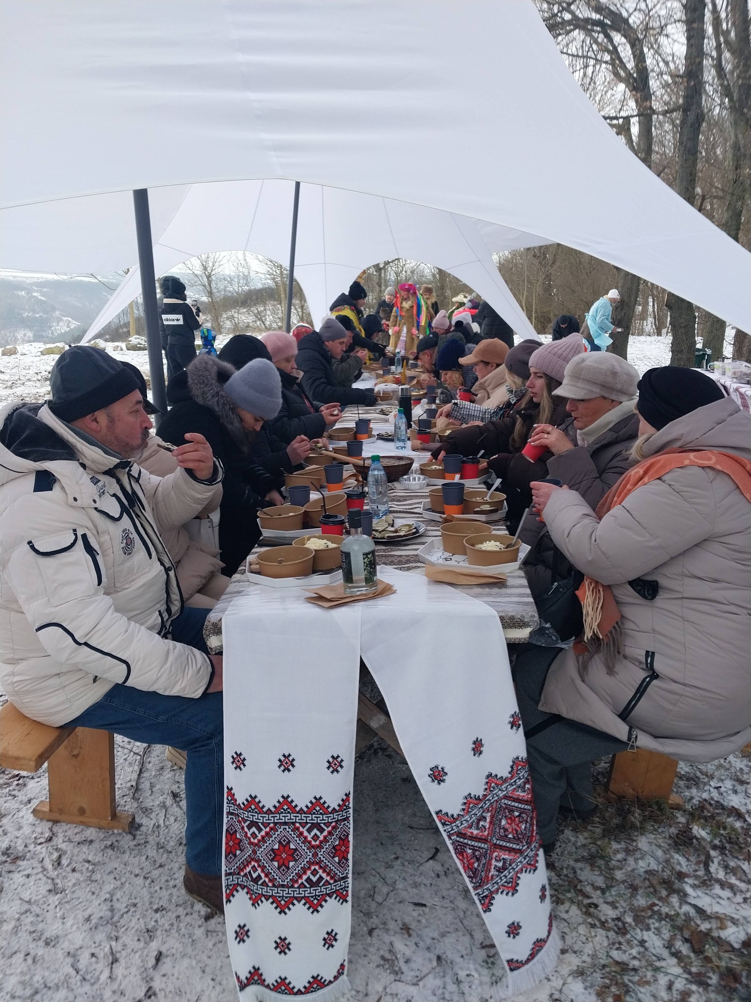 Не обійшлося й без справжніх смаків Різдва: частування просто неба за рецептами наших прабабусь. Гаряча юшка, ситна мамалига зі шкварками, приготовані на вогнищі, ароматний узвар та глінтвейн створили домашню ауру зимового свята.