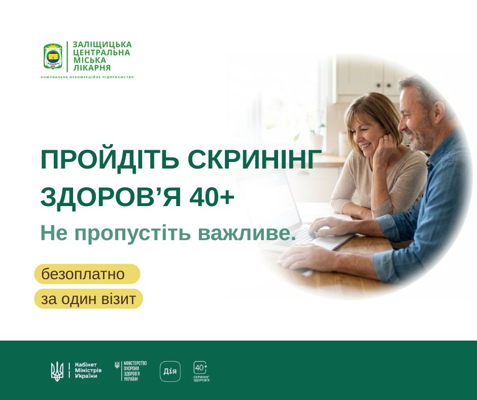 🩺 КНП “ЗАЛІЩИЦЬКА ЦМЛ” ДОЛУЧАЄТЬСЯ ДО ПРОГРАМИ «СКРИНІНГ ЗДОРОВ’Я 40+»!