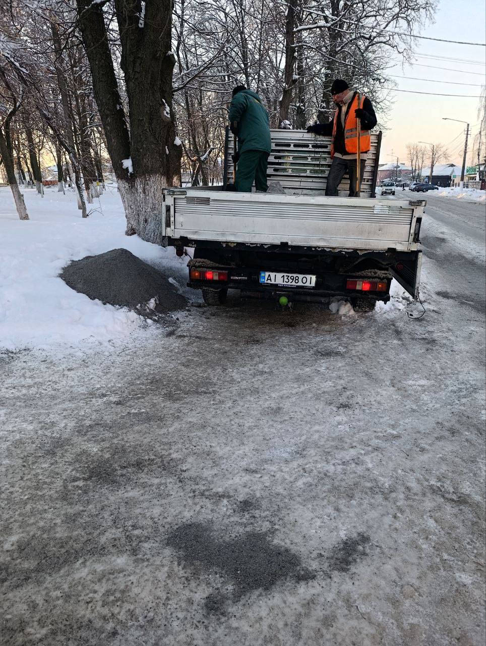 ✔️приготовлено піщано-сольову суміш та розвезено на місця для посипання тротуарів і проблемних ділянок доріг