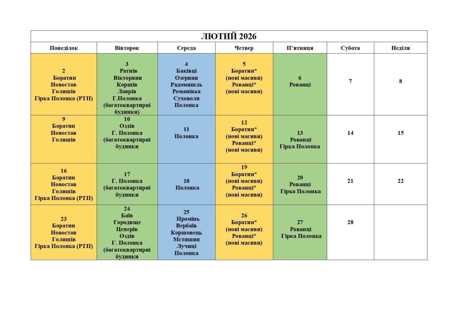 ♻ КП «Боратин» інформує про графік вивезення твердих побутових відходів впродовж лютого ⬆️