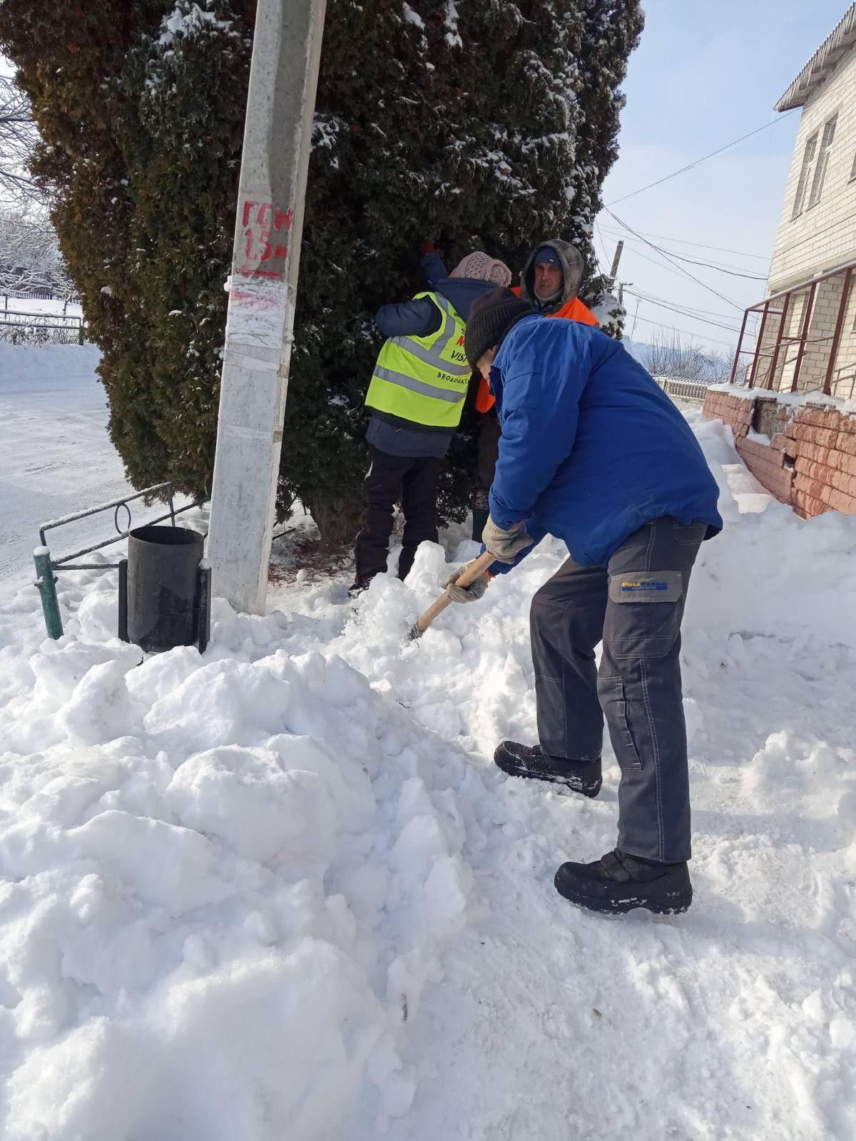 В селах проведено роботи з розчищення снігу на автобусних зупинках, біля контейнерних майданчиків, капличок на кладовищах і в місцях загального користування.