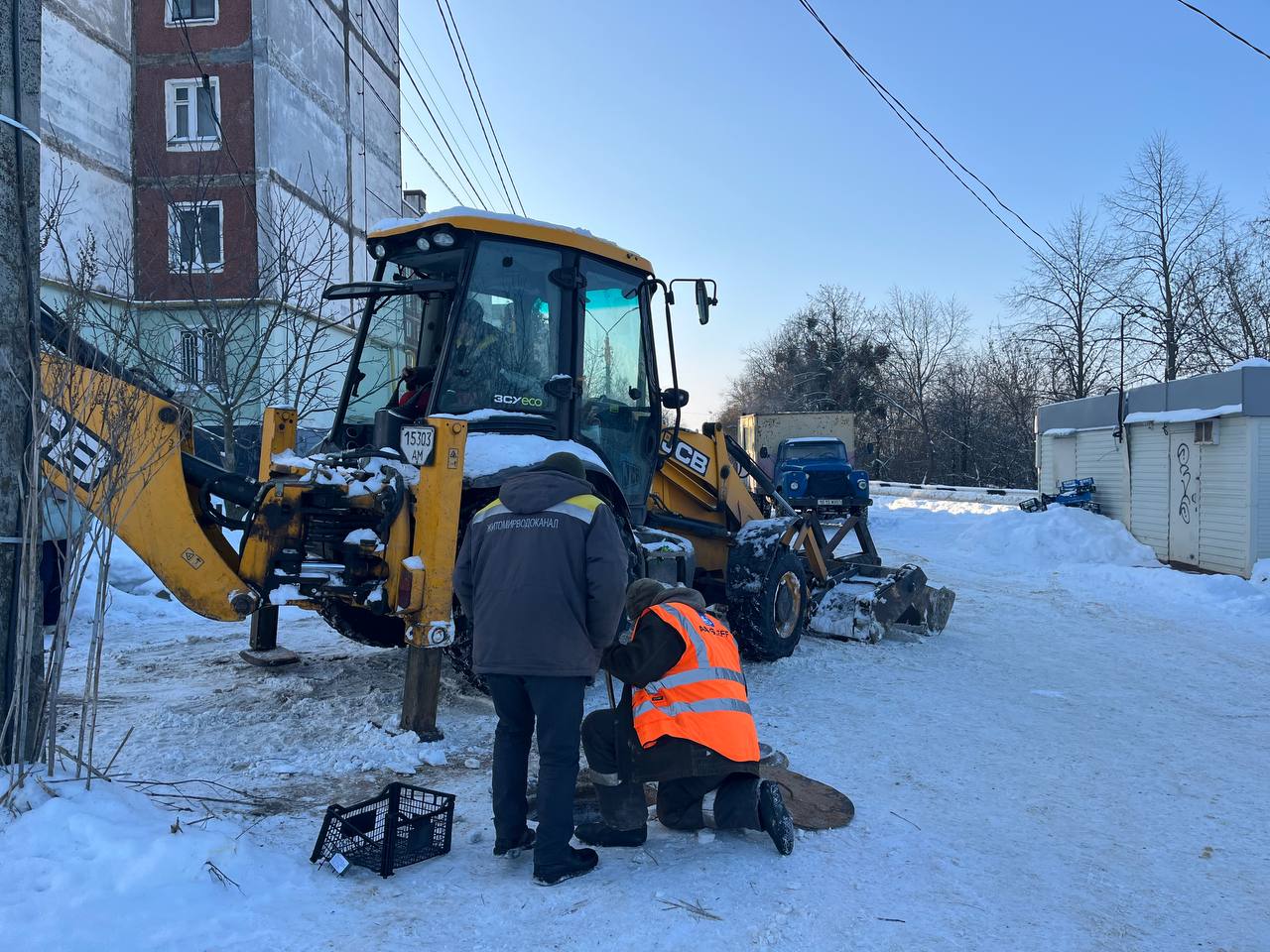 Попри мінусові температури, сьогодні бригади водоканалу виконують аварійно-відновлювальні роботи на вулиці Захисників України.
