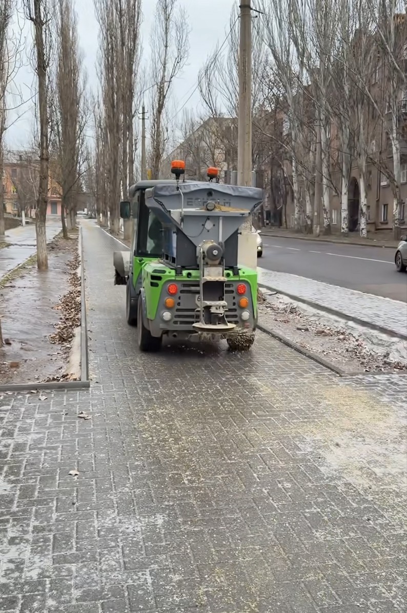 Працівники підприємства здійснюють посипання тротуарів протиожеледними матеріалами, очищення пішохідних зон та прибирання територій як вручну, так і за допомогою спеціальної техніки.