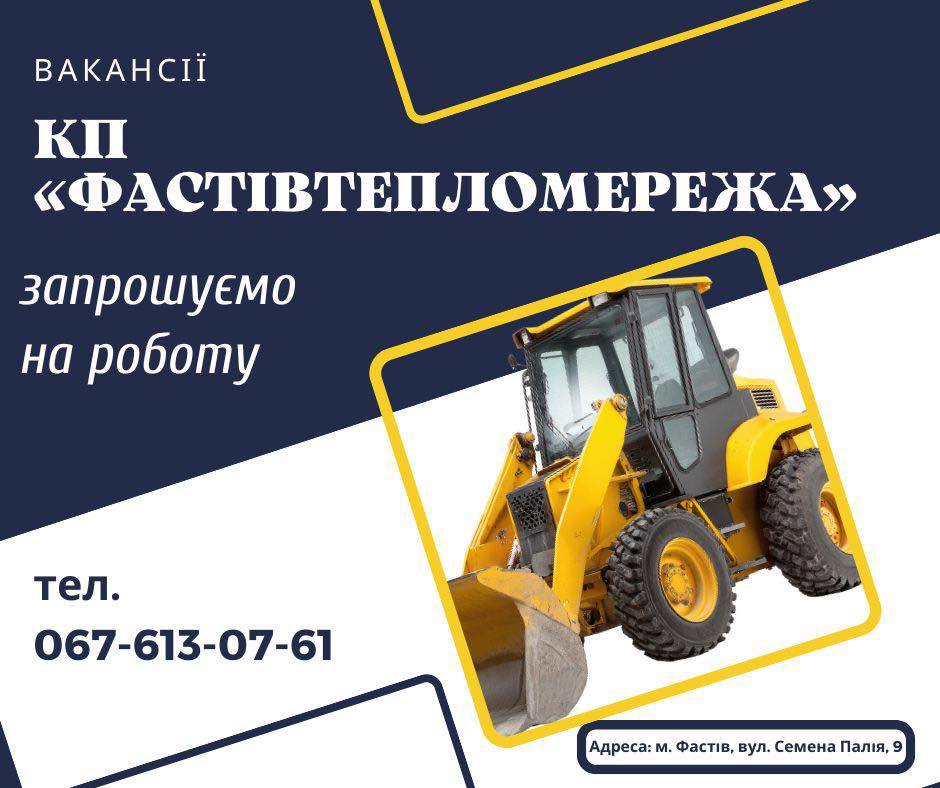 📢 КП «ФАСТІВТЕПЛОМЕРЕЖА» ЗАПРОШУЄ НА РОБОТУ!