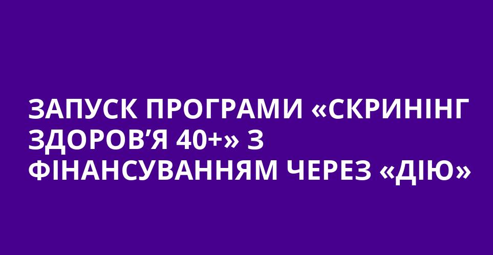 ✔️Кабінет Міністрів України затвердив порядок реалізації програми «Скринінг здоров’я 40+», що запрацює вже з 1 січня 2026 року та дозволить українцям та українкам від 40 років і старше пройти медичне обстеження та вчасно виявляти ризики хронічних захворювань, контролювати стан здоров’я й запобігати ускладненням, які найчастіше призводять до інвалідності чи передчасних смертей.
