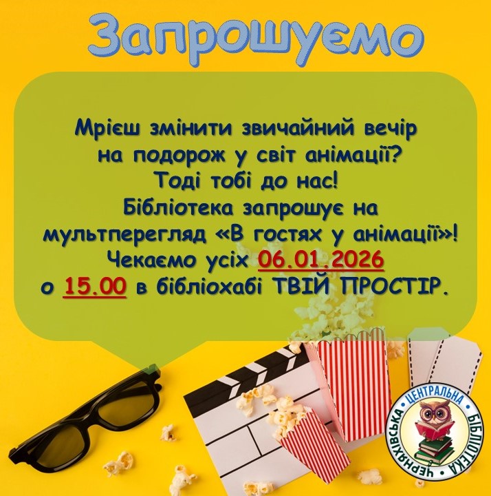Чекаємо усіх 06.01.2026 о 15.00 в бібліохабі ТВІЙ ПРОСТІР.🎬