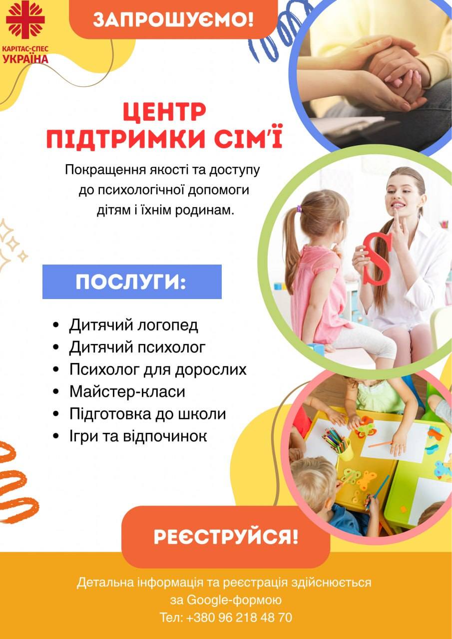 Карітас – Спес реалізує безкоштовну програму “Центр Підтримки Сім’ї” – спрямовану на покращення якості та доступу до психологічної допомоги родинам.