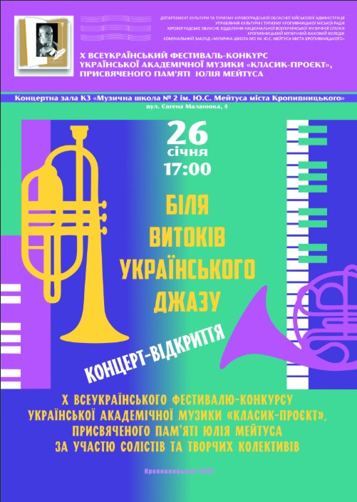 Х Всеукраїнський фестиваль-конкурс академічної української музики “Класик-проєкт”, присвячений пам’яті Юлія Мейтуса, стартує у Кропивницькому в понеділок, 26 січня.