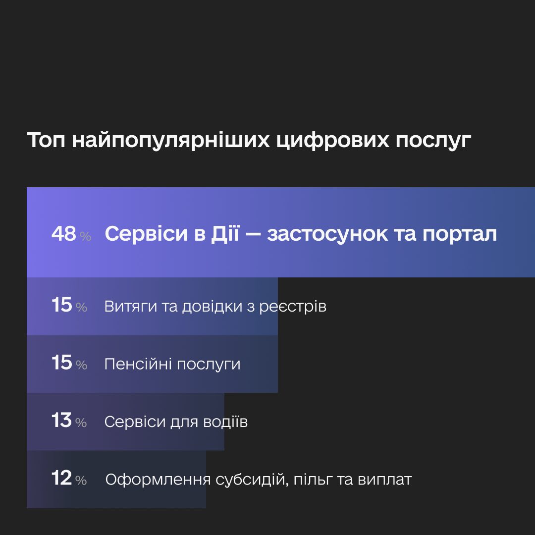 Цифрові сервіси стали головним інструментом взаємодії людей з державою. За даними щорічного опитування від КМІС, 59% українців обирають онлайн-послуги в кілька кліків замість офлайну. 85% з них задоволені якістю сервісів.