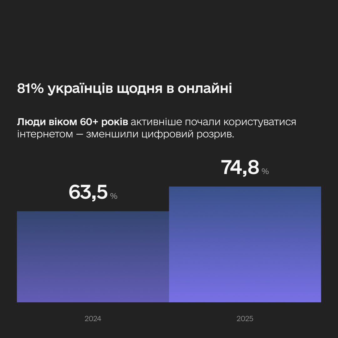 ✅ удвічі підвищили цифрову грамотність — у 2024 році 44% українців не користувалися онлайн-послугами через нестачу навичок, цьогоріч — 22%.