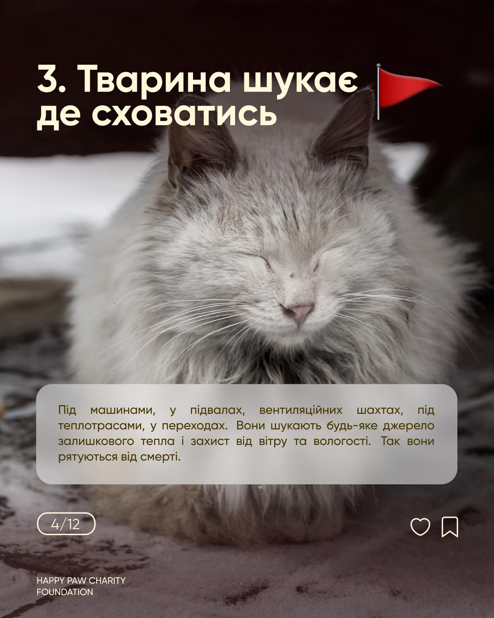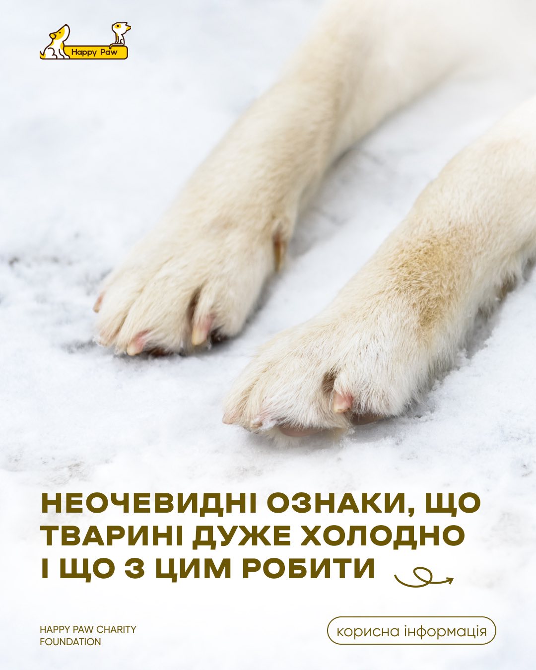 Без їжі, тепла і захисту шанс для вуличної тварини пережити мороз часто вимірюється годинами, а не днями. Особливо вразливі цуценята, літні собаки й тварини дрібних порід — вони втрачають тепло набагато швидше.