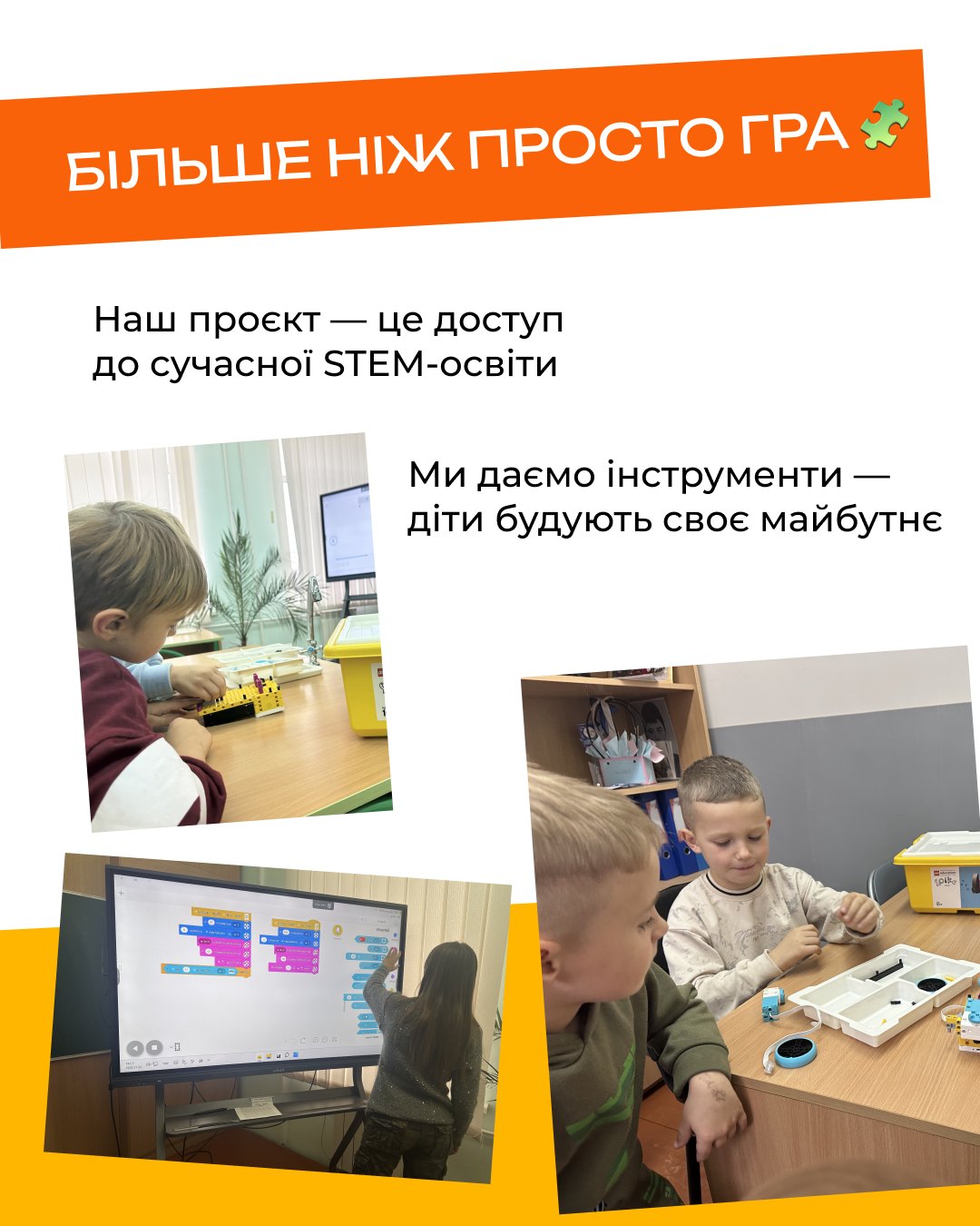 Саме для таких моментів і працює наш проєкт. Ми прагнемо дати дітям доступ до сучасної STEM-освіти, щоб вони могли повірити у власні сили, прокачати технічні скіли та відчути смак перемоги.