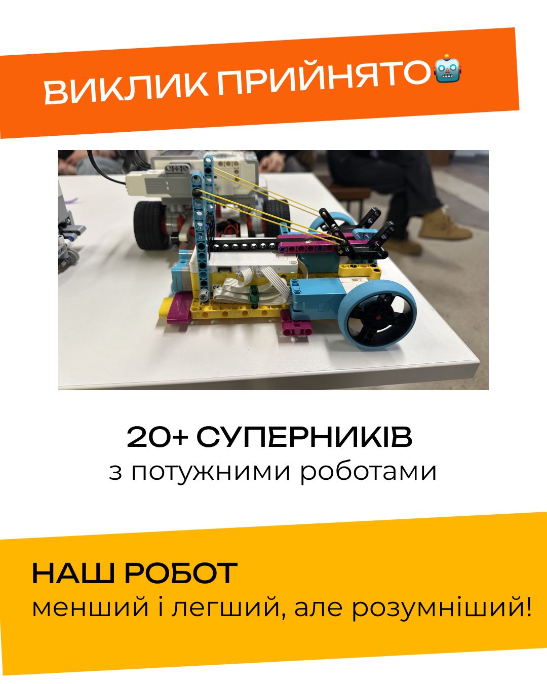 Це була справжня битва інтелектів. Понад 20 суперників, масивні та грізні роботи-конкуренти… А наш? Менший, легший, але — розумний, швидкий і неймовірно маневрений.