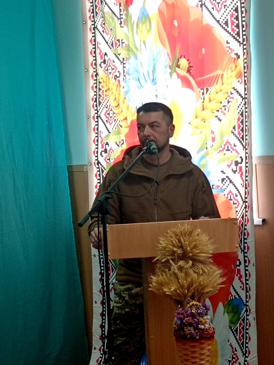 Першою до військового зі словами безмежної подяки звернулася Ольга Чернуха, очільниця громади. Вона побажала міцного здоров’я, завершення війни, щасливого життя, мирної служби.