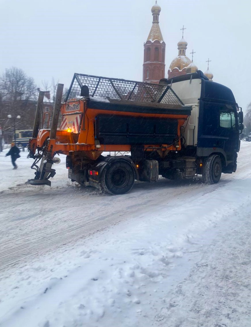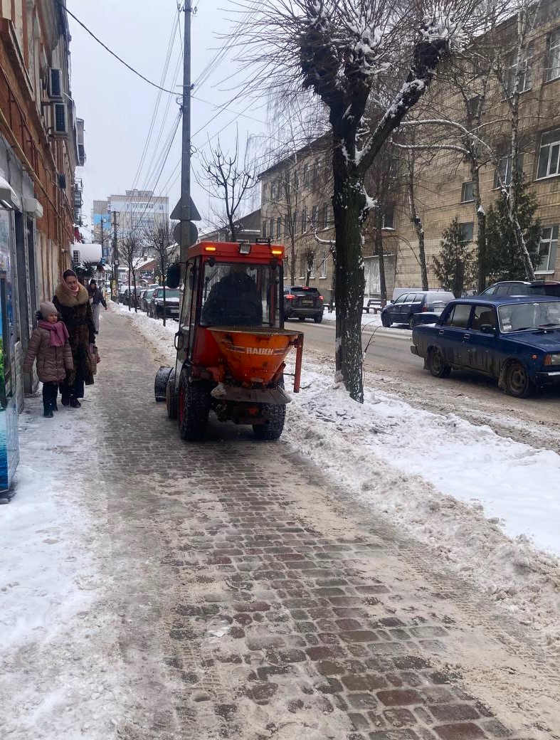 💨❄️ У морозну та сніжну погоду комунальники прикладають усі зусилля аби оперативно провести роботи 🚜🧹 по прибиранню територій загального користування, доріг та тротуарів від снігу. Також за необхідності здійснюється підсипка протиожеледною сумішшю задля безпеки усіх учасників дорожнього руху.