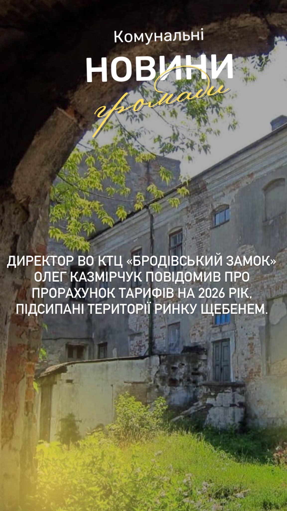 🔵Директор ВО КТЦ «Бродівський замок» Олег Казмірчук повідомив про прорахунок тарифів на 2026 рік, підсипані території ринку щебенем.